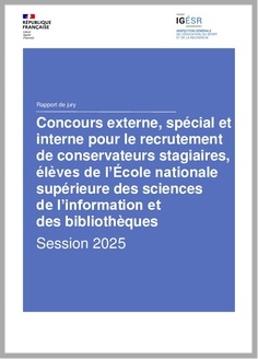 Rapport de jury des concours externe, spécial et interne pour le recrutement de conservateurs stagiaires des bibliothèques, élèves de l'École nationale supérieure des sciences de l'information et des bibliothèques (Enssib), session 2025.